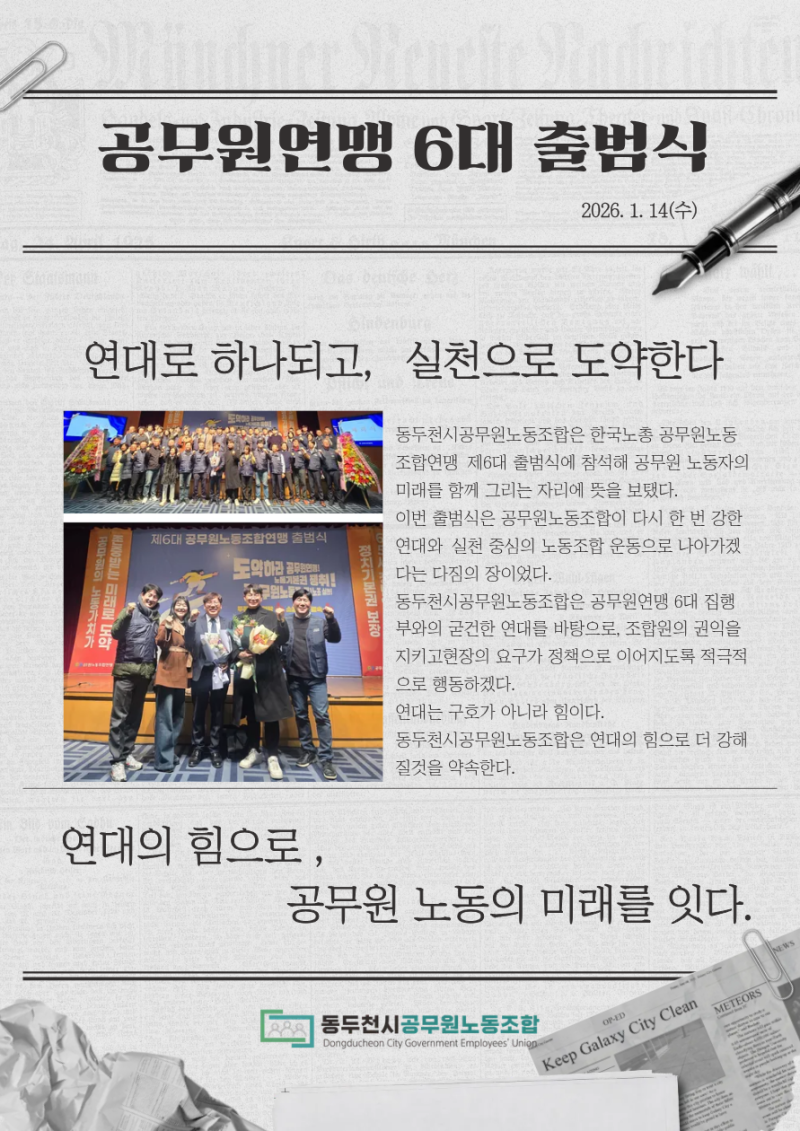 20260114 공무원연맹 6대 출범식 작성자 정보 동공노관리자 작성 작성일 2026.01.14 16:44 컨텐츠 정보 81 조회 목록 본문 공무원연맹 6대 출범식 관련자료 댓글 0 등록된 댓글이 없습니다. 로그인한 회원만 댓글 등록이 가능합니다. 목록